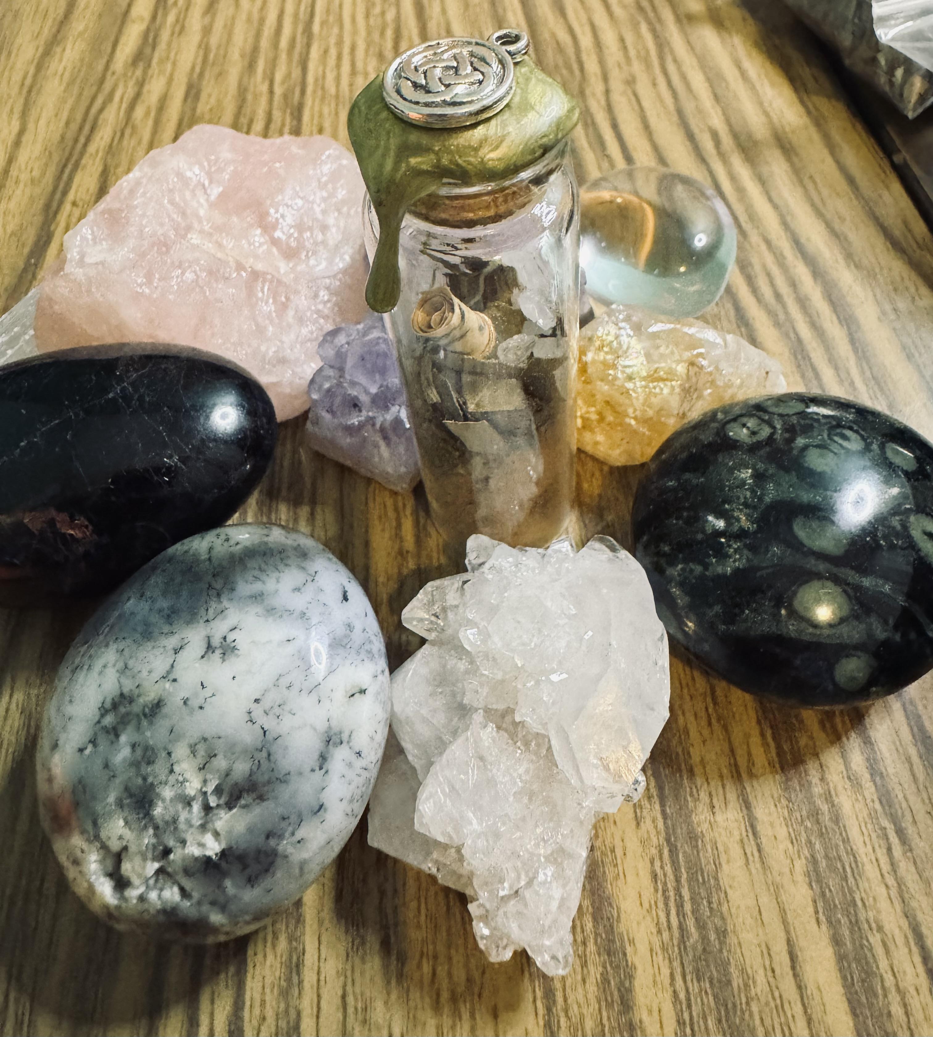 Custom spell jars are available upon request for more personal intentions, including healing, spiritual growth, visibility, creativity or transition work.